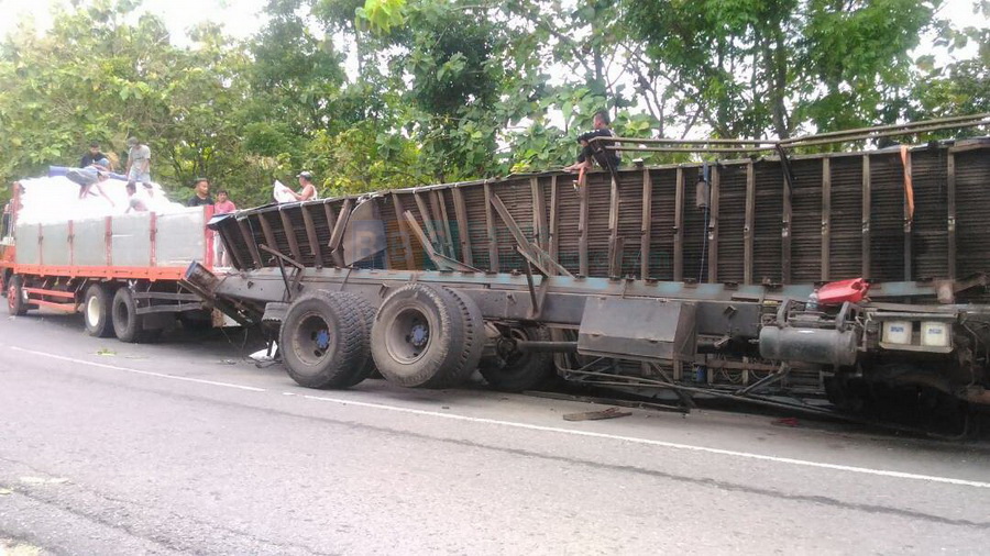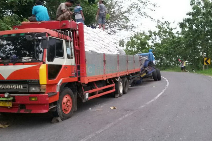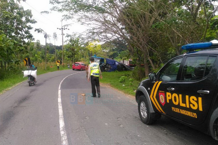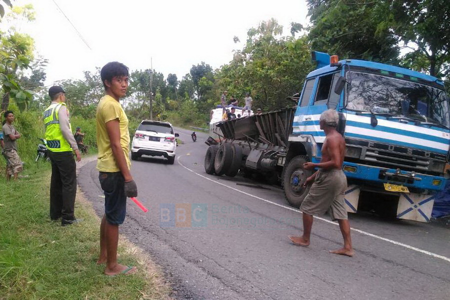 “Diduga bak truk tidak mampu menahan muatan yang terlalu banyak, sehingga baut-baut bak truk terlepas,” terang Kapolsek.