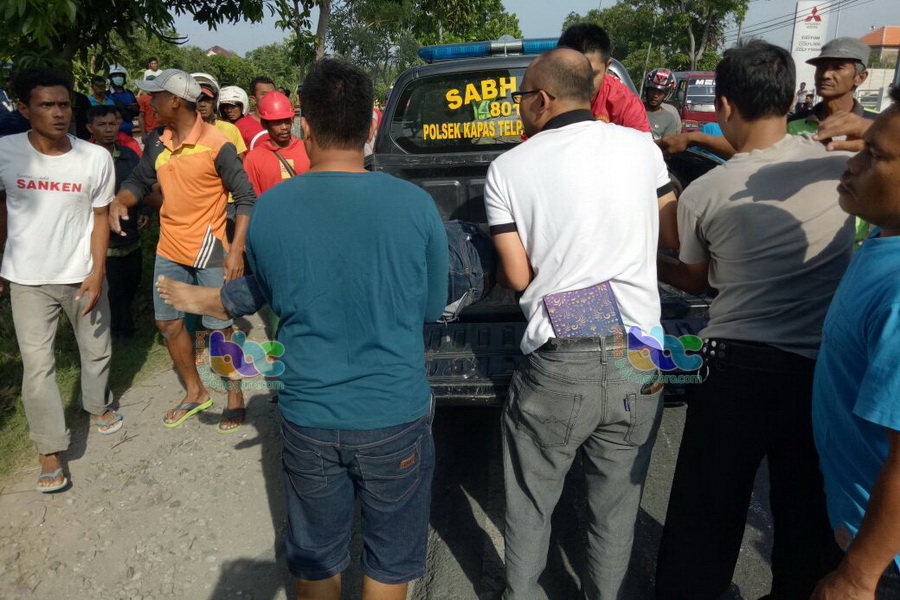 Mengetahui kejadian tersebut, saksi segera menghubungi Polsek Kapas dan petugas Polsek Kapas segera mendatangi TKP dan petugas menemukan korban terpental hingga ke taman yang terletak di utara rel, dalam posisi terlentang dengan kepala di timur.