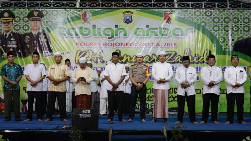 Bojonegoro Kota - Sebagaimana telah direncanakan sebelumnya, pada Jumat (27/04/2018) mulai pukul 19.00 WIB tadi malam, Polres Bojonegoro menggelar Tabligh Akbar di Alun-alun Kota Bojonegoro dengan menghadirkan KH Anwar Zahid sebagai penceramah dan mendatangkan para ulama, habaib serta tokoh-tokoh agama yang ada di Kabupaten Bojonegoro.