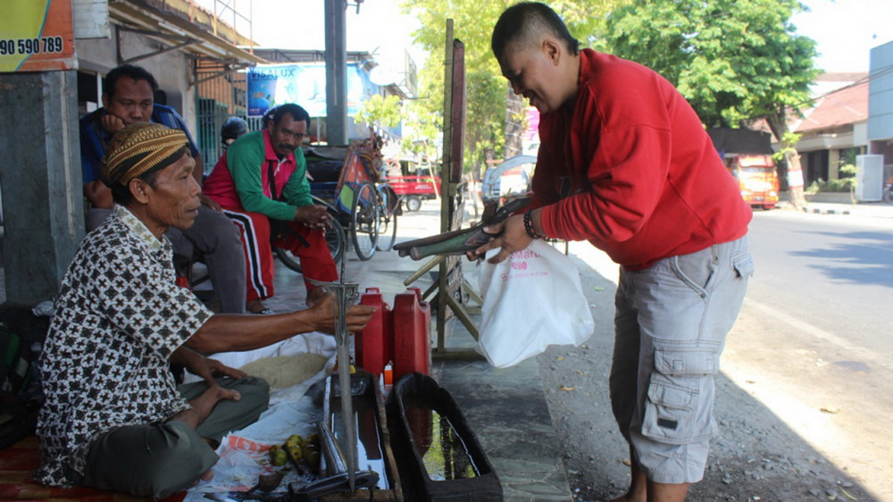 Tradisi itu terus di pertahankan Mulyono (60) warga Desa Todanan Kecamatan Todanan Kabupaten Blora, yang berkeliling menjual jasa mencuci keris dan benda peninggalan lainnya. Ia mangkal dari satu tempat ke tempat lainnya hingga beberapa hari.