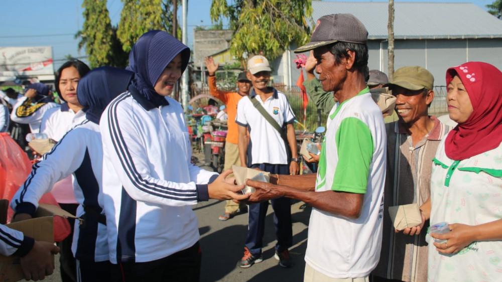 Sejumlah Polwan bersama Kapolres Bojonegoro dan Pejabat Utama, serta Anggota Polres Bojonegoro, menyusuri seputaran kota dengan mengendarai sepeda pancal yang sekaligus melaksanakan olahraga. Setiap ada pangkalan tukang becak dan beberapa pedagang kaki lima, anggota polwan tersebut membagikan nasi bungkus.