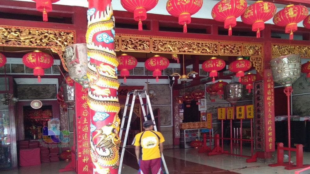 Bojonegoro - Jelang perayaan Tahun Baru Imlek 2020 atau tahun 2571 Kongzili, yang jatuh pada tanggal 25 Januari 2020, Tempat Ibadah Tri Darma (TITD) Hok Swie Bio Bojonegoro, atau masyarakat lebih mengenal dengan sebutan Kelenteng Hok Swie Bio Bojonegoro tersebut mulai berbenah diri dengan mendandani setiap sudut bangunan peribadatan bagi kaum Konghucu tersebut.