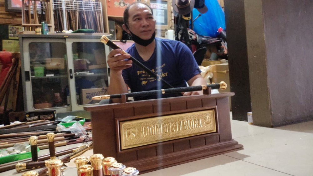 Blora - Masa pandemi virus Corona (Covid-19) saat ini, tak menjadikan penghalang bagi perajin tongkat komando di Kabupaten Blora, Jawa Tengah.