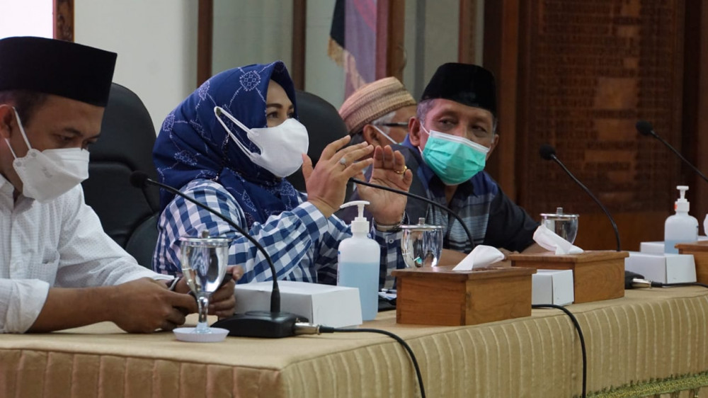 Wakil Bupati Blora Tri Yuli Setyowati saat pimpin rapat koordinasi pembentukan relawan pemulasaraan jenazah pasien COVID-19. Sabtu (03/07/2021) (foto: istimewa)