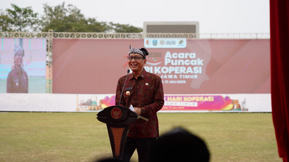 Bojonegoro - Menteri Koperasi Republik Indonesia, Budi Arie Setiadi dan Gubernur Jawa Timur, Khofifah Indar Parawansa, hadiri Puncak Peringatan Hari Koperasi ke-78 Provinsi Jawa Timur di Stadion Letjen Soedirman, Bojonegoro. Kamis (17/07/2025).