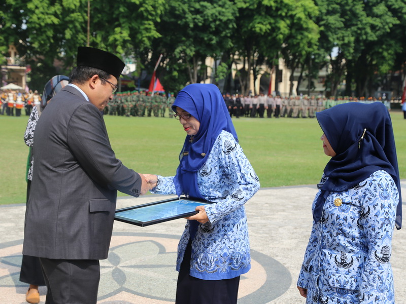 SEPULUH sekolah di Bojonegoro menerima Piagam Sekolah Welas Asih. Piagam diserahkan Bupati Bojonegoro Drs H Suyoto MSi saat upacara Hari Sumpah Pemuda di Alun-Alun Kabupaten setempat, Jumat (28/10/2016) pagi. Penyerahan piagam ini disaksikan ratusan pelajar mulai jenjang SD, SMP, dan SMA. Ada juga mahasiswa, organisasi pemuda dan wanita, Korpri, anggota TNI, dan Polri.