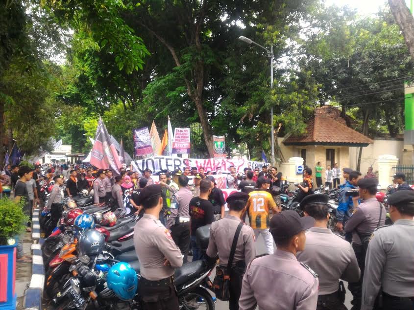 Aksi unjuk rasa diawali dari depan Kantor Pos Jalan Trunojoyo, kemudian berjalan menuju depan Pendapa Pemkab. Mereka berorasi di sana menyuarakan tuntutan dan rasa kekecewaannya. Massa kemudian akan bergerak ke Stadion Letjend H Soedirman.