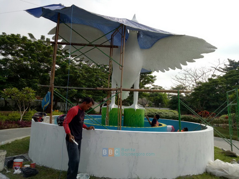 IKON wisata baru sebentar lagi dimiliki Taman Rajekwesi Bojonegoro, yakni Patung Air Mancur Mliwis Putih. Sekarang tengah diselesaikan pembangunan ikon wisata tersebut. Terlihat para pekerja sedang sibuk melakukan proses finishing pada patung burung mliwis besar berwarna putih itu.