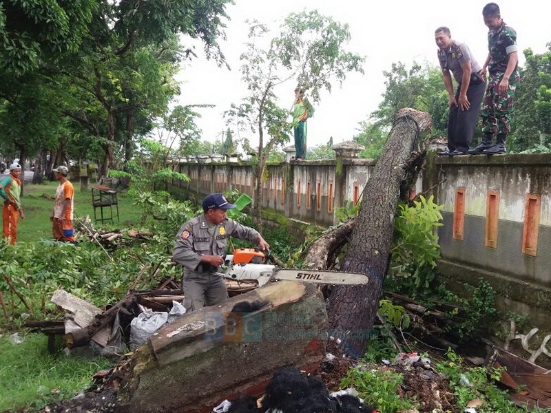 Pohon yang tumbang berada kurang lebih 300 meter sebelah barat perlintasan kereta api Dusun Medalem Desa Prayungan Kecamatan Sumberrejo Kabupaten Bojonegoro.